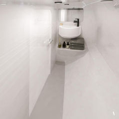 You will enjoy the bathroom because it has a lot of space, sink, a showerhead and a comfortable toilet. Expect it to have a water capacity of 50 liters.